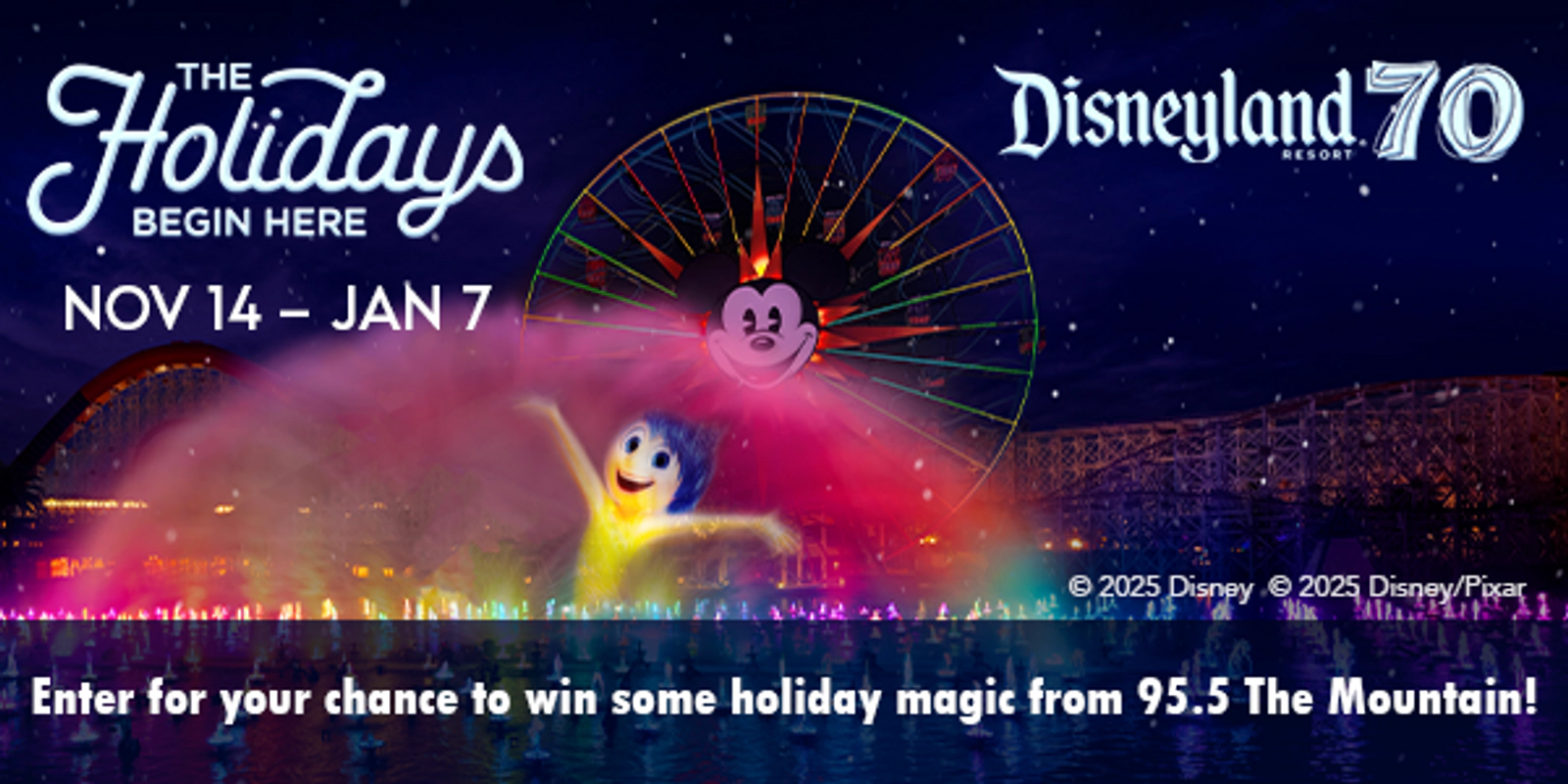 The Holidays Begin Here at the Disneyland® Resort, Nov 14–Jan 7. Enter for your chance to win a visit from 95.5 The Mountain and feel the holiday spirit during the Disneyland® Resort 70th Celebration!